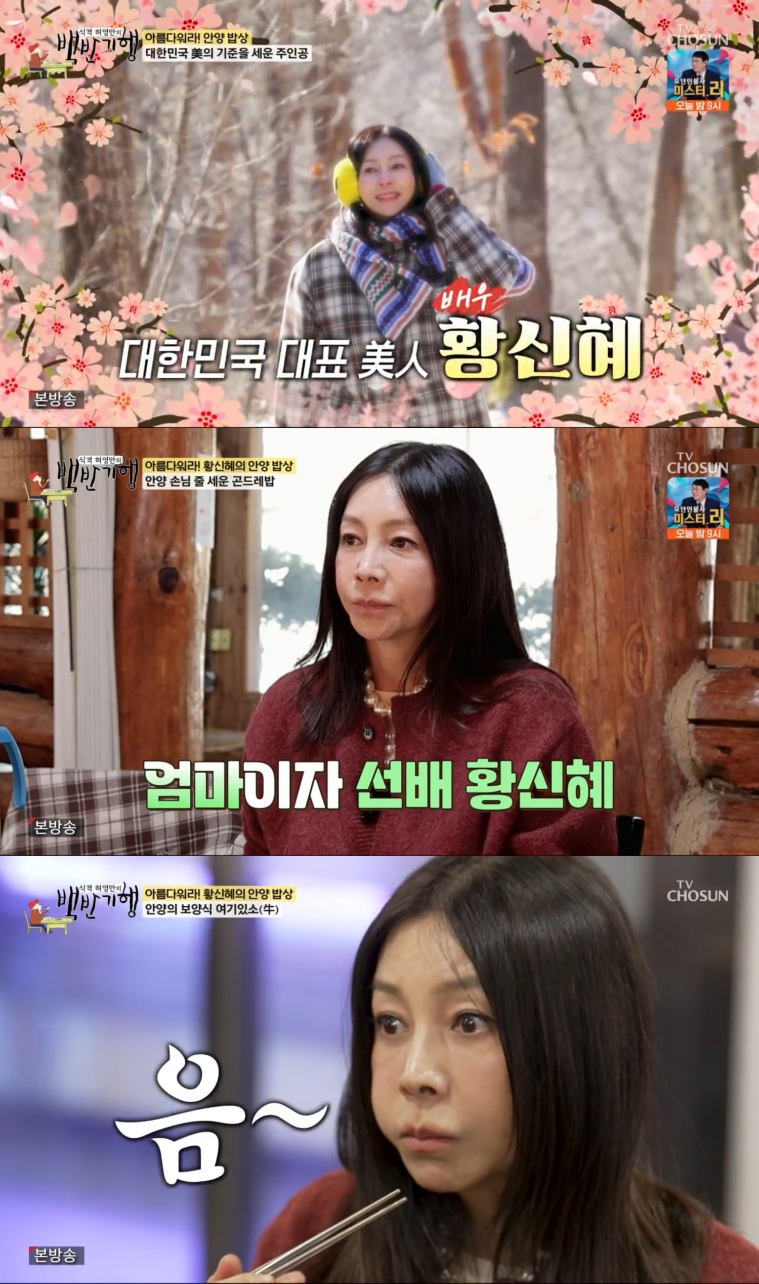 배우 황신혜가 '백반기행'에서 새 먹방 여신으로 반전 매력을 발산했다. 황신혜는 지난 8일 방송된 TV조선 '식객 허영만의 백반기행'(이하 '백반기행')에 출연해 안양 나들이에 나