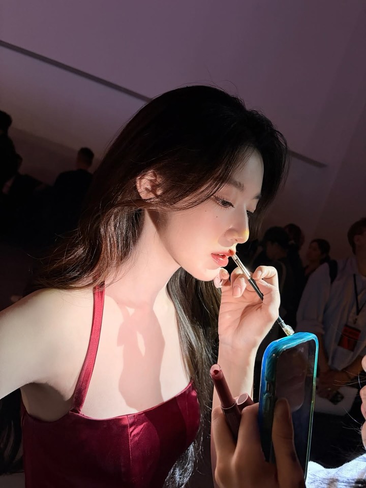 '고윤정 옆태 닮은꼴?'…아이들 슈화, 레드 드레스 속에서 피어난 고혹美