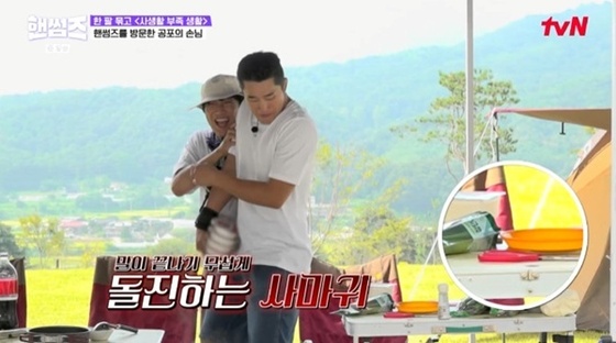 tvN '핸썸가이즈'tvN '핸썸가이즈''핸썸가이즈' 김동현, 이이경이 캠핑장에 등장한 사마귀에 질색했다.일 오후에 방송된 tvN 예능 프…