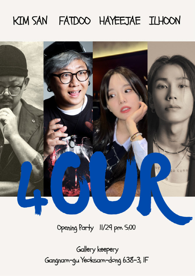 [이데일리 이정훈 기자] 서울 강남구 역삼동에 위치한 갤러리 키퍼리가 오는 29일부터 4명의 신진 작가를 소개하는 전시회 ‘포아워’(4our)를 개최한다고 28일 밝혔다. 이번 전