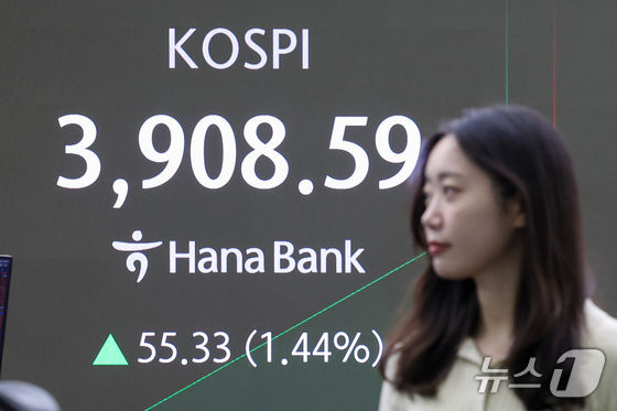 24일 오전 서울 중구 하나은행 본점 딜링룸 전광판에 코스피 지수 개장 후 시황이 나오고 있다. 2025.11.24/뉴스1 News1 안은나 기자주말…