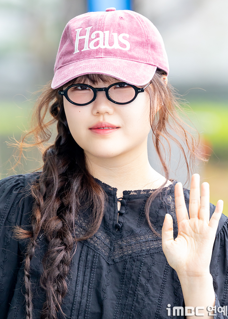 악뮤(AKMU) 이수현이 9일 오후 서울 상암 MBC신사옥에서 열린 라디오 '정오의 희망곡 김신영입니다' 출근길에 포즈를 취하고 있다. 이날 악뮤(AKMU) 완전체 이찬혁과 이수현