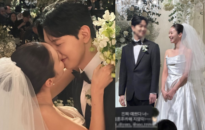 '혼전임신' 김지영 오늘(1일) 결혼식 키스 사진 공개..재력가 남편 정체는?