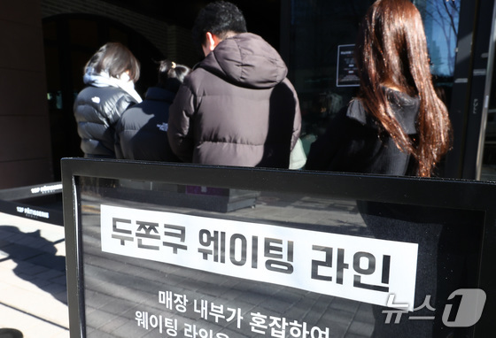 지난달 20일 서울 종로구 한 제과점에서 시민들이 두쫀쿠를 구매하기 위해 줄을 서 있다. 2026.1.20 뉴스1 최지환 기자선풍적 인기를 끌었던 '…
