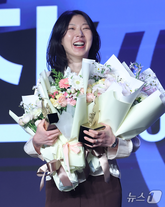 13일 오후 서울 광진구 그랜드 워커힐 호텔에서 열린 프로배구 진에어 2025-2026 V리그 시상식에서 신기록상득점, 블로킹을 수상한 현대건설 양효진…