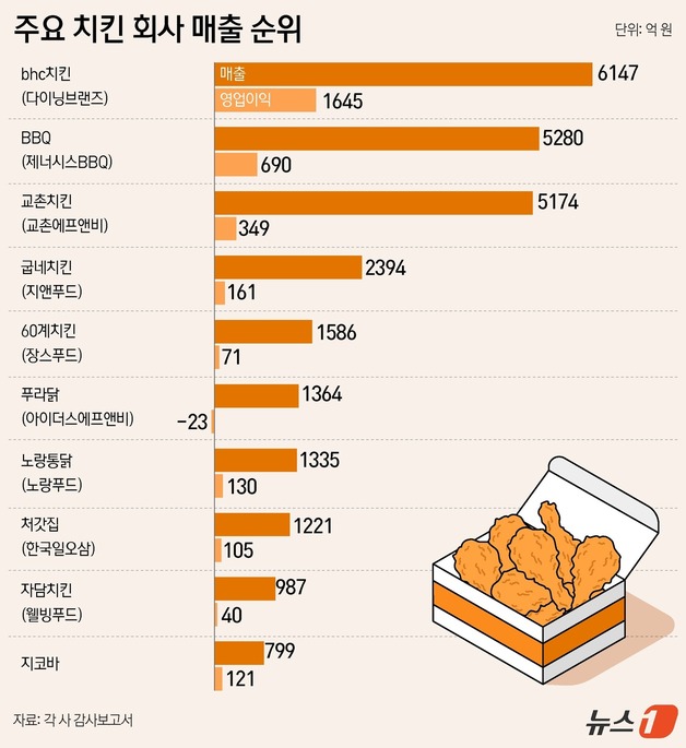 뉴스1 윤주희 디자이너치킨 프랜차이즈 업계가 연 매출 6000억 원 시대를 열며 외형 성장세를 이어가고 있다. 주요 브랜드들이 일제히 매출 규모를 …