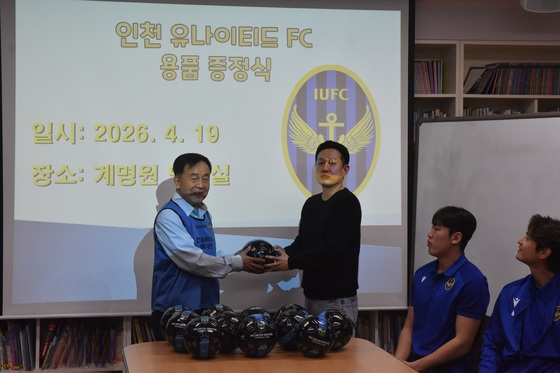 K리그1 인천, 강화 계명원 방문 봉사…축구교실 진행·사인볼 증정