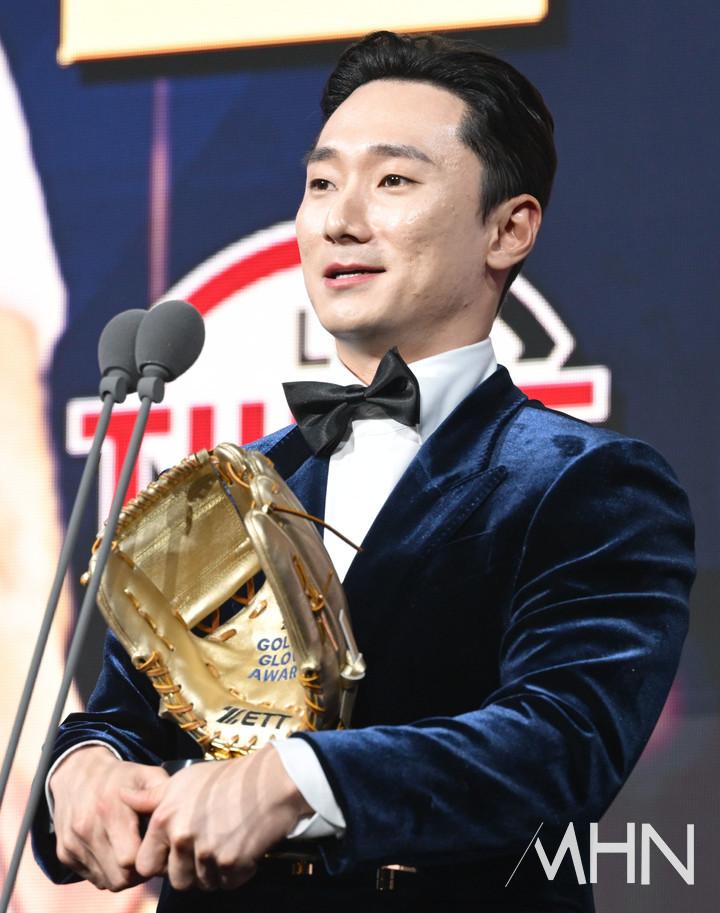 (MHN 금윤호 기자) 프로야구 LG 트윈스 신민재가 생애 첫 골든글러브 수상이라는 감격적인 순간을 맛봤다. 신민재는 9일 서울 잠실 롯데호텔 월드에서 열린 2025 KBO 골든글
