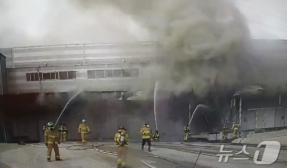 12일 오전 8시 25분쯤 전남 완도군 군외면 원동리의 한 냉동창고에서 불이 나 소방당국이 진화작업을 벌이고 있다. 전남소방본부 제공. 재판매 및 DB금지…