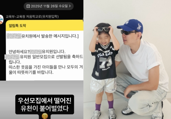 [OSEN=임혜영 기자] 제이쓴이 아들의 유치원 합격 소식을 전했다. 제이쓴은 26일 개인 채널에 “우선모집에서 떨어진 유치원이 붙어버렸다”라는 글을 게재했다. 제이쓴이 공개한 사