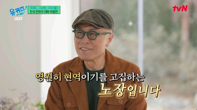 <방송 시청 후 작성된 리뷰 기사입니다.> [OSEN=장우영 기자] 만화가 허영만이 영원한 현역이고 싶다고 고백했다. 1일 방송된 tvN ‘유퀴즈온더블럭’에는 허영만이 출연해 유재
