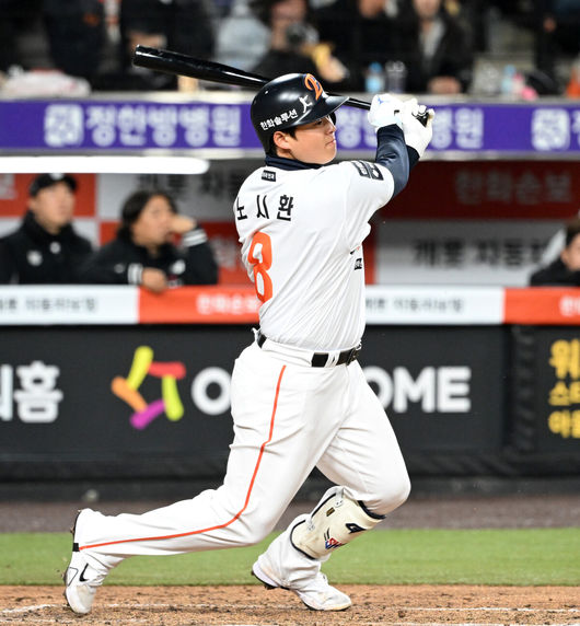 [OSEN=조은혜 기자] 프로야구 한화 이글스 노시환이 퓨처스리그에서 적시타를 기록했으나 동시에 3개의 삼진을 당했다. 노시환은 19일 서산구장에서 열린 2026 메디힐 KBO 퓨