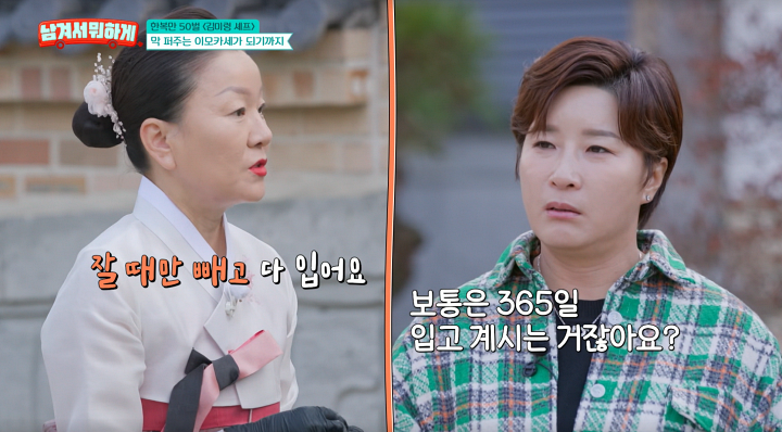이모카세 김미령 셰프가 한복 사랑을 드러냈다. 24일 방송된 tvN STORY '남겨서 뭐하게'에는 히밥, 이모카세 김미령 셰프가 출연했다. 이날 김미령 셰프는 이모카세라는 별명에