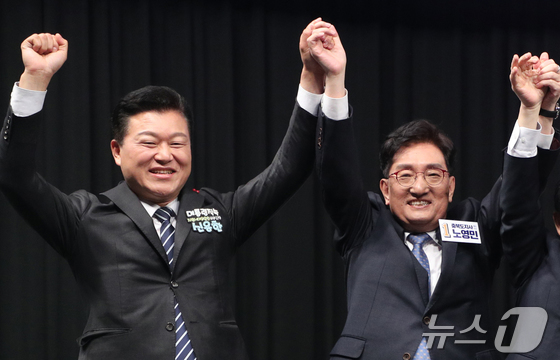 노영민오른쪽·신용한 더불어민주당 충북지사 예비후보. 2026.4.2 뉴스1 김용빈 기자더불어민주당은 4일 6·3 지방선거 충북도지사…