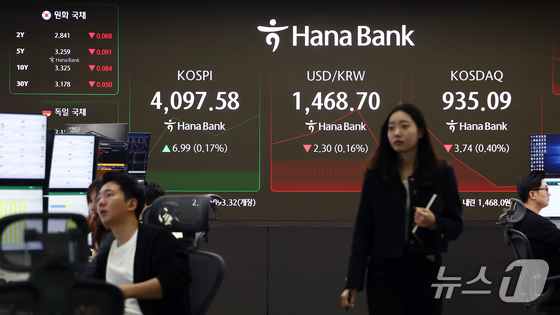 16일 오전 서울 중구 하나은행 딜링룸에서 딜러들이 업무를 보고 있다. 2025.12.16/뉴스1 News1 김민지 기자한국은행과 국민연금이 외환스와…