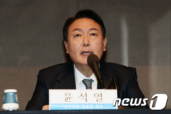 윤석열 전 대통령당시 국민의힘 대선후보가 서울 중구 프레스센터 국제회의장에서 열린 관훈클럽 초청 토론회에서 기조발언을 하고 있다. 2021.12.14/…