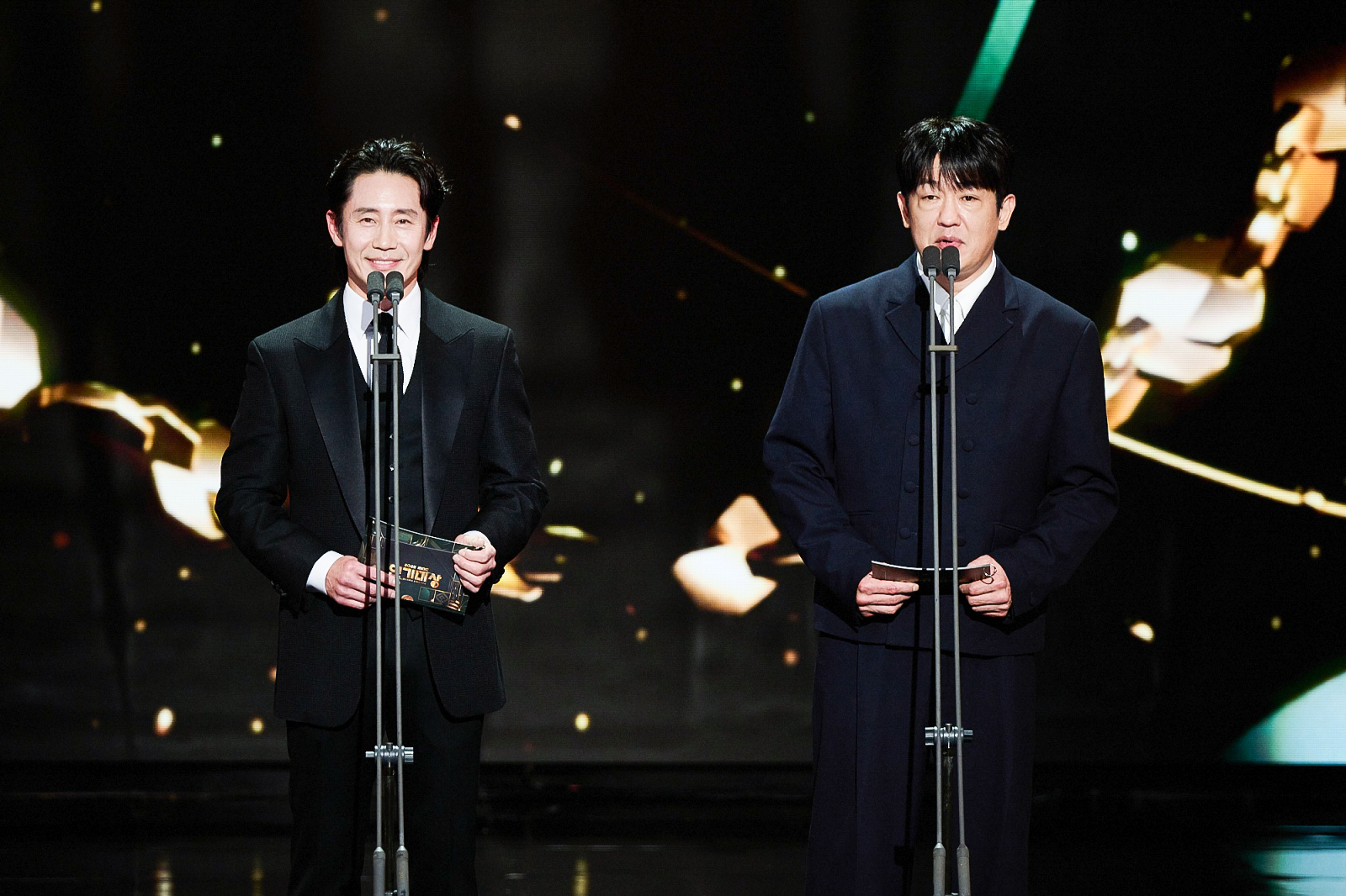 배우 신하균, 허성태가 30일 오후 서울 상암 MBC신사옥 미디어센터에서 열린 2025 MBC 연기대상에 참석해 시상을 하고 있다. iMBC연예 고대현 | 사진 MBC ※ 이 콘텐