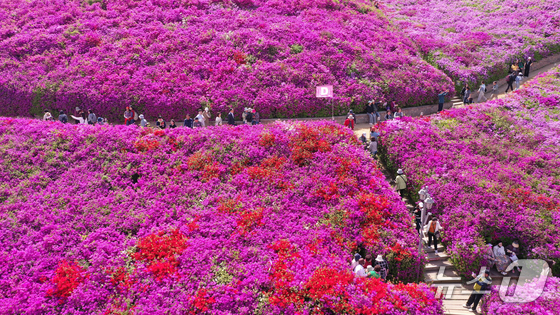 군포철쭉축제가 열리고 있는 22일 경기 군포시 철쭉동산에 철쭉이 만개해 시민들의 시선을 사로잡고 있다. 2026.4.22 뉴스1 김영운 기자주말인 2…