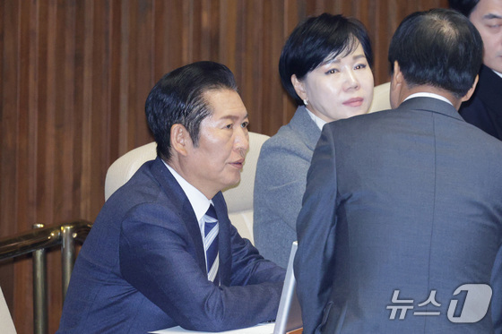 정청래 더불어민주당 대표가 22일 서울 여의도 국회에서 열린 제430회국회임시회 제2차 본회의에서 의원들과 대화하고 있다. 2025.12.22/뉴스1 …