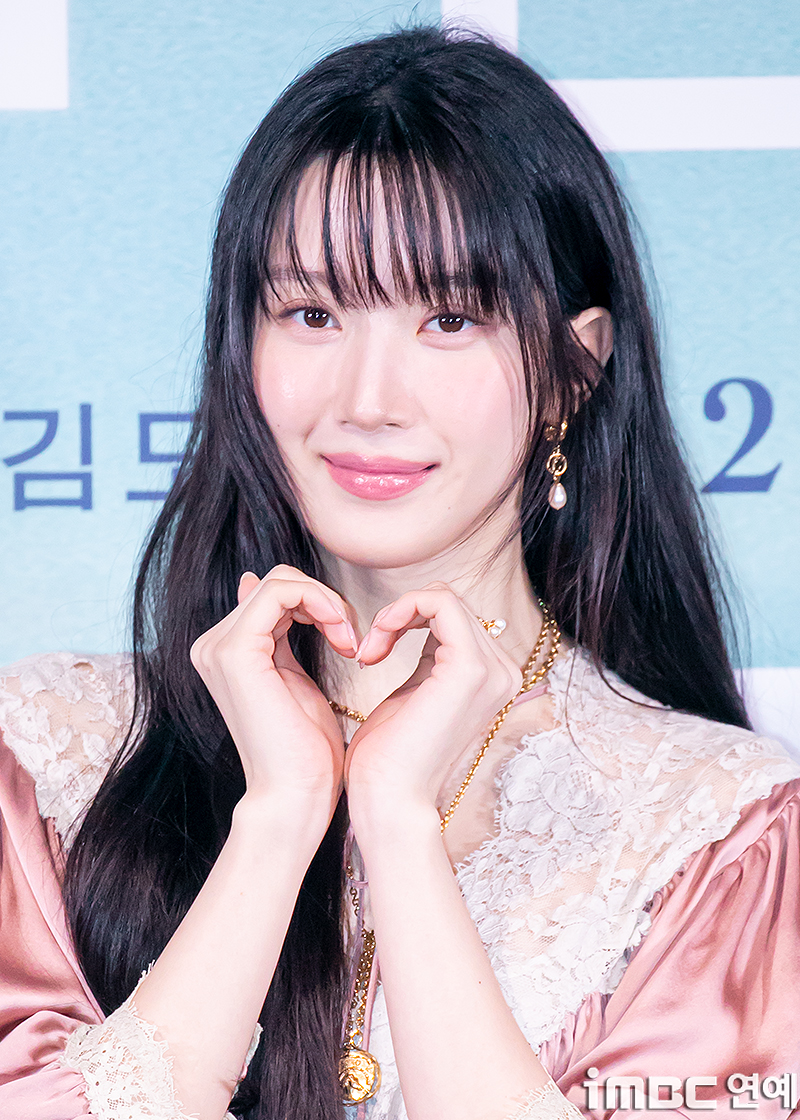 배우 문가영이 18일 오후 서울 용산CGV에서 열린 영화 ‘만약에 우리’ 언론시사회에 참석해 포즈를 취하고 있다. ‘만약에 우리’는 뜨겁게 사랑했던 은호와 정원이 10년 만에 우연