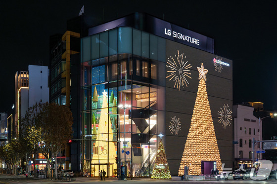 청담동 'LG D5' 매장 외벽에 크리스마스 트리 띄운다