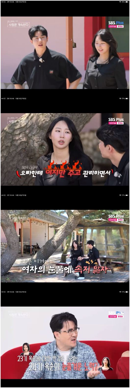 <리뷰 : 방송 시청 후 작성된 리뷰 기사입니다.> [OSEN=오세진 기자] ‘나는 SOLO, 그 후 사랑은 계속된다’ 24기 옥순이 미스터 한을 달래면서 23기 옥순에 대한 비난