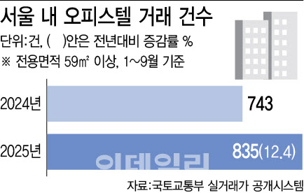 [이데일리 이다원 기자] 서울 오피스텔 시장이 아파트 규제 강화의 대체재로 부상하며 거래량이 늘고 있다. 특히 정부 규제가 본격화한 3분기에 접어들며 가격이 전환점을 맞으며 ‘주거