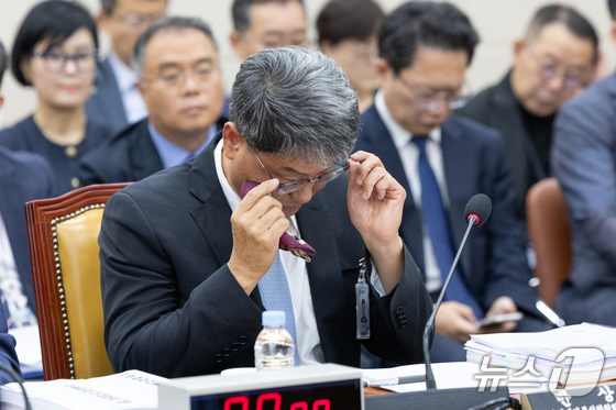 반상권 방송미디어통신위원회 위원장 직무대리 겸 대변인이 일 서울 여의도 국회에서 열린 과학기술정보방송통신위원회 방송통신위원회 등에 대한 국정감사에 출석해 안경을 고쳐…