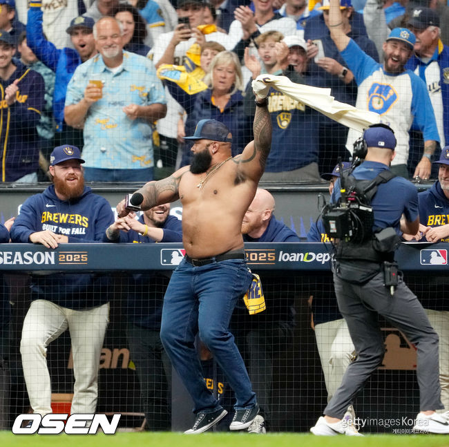 [OSEN=이상학 기자] KBO리그에서 전무후무한 40홈런-40도루 대기록을 세운 ‘원조 역수출’ 에릭 테임즈(39)가 유니폼을 찢는 퍼포먼스로 ‘친정팀’ 밀워키 브루어스를 격렬히