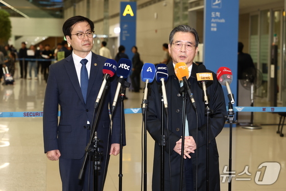 한미 관세협상 후속 논의를 위해 미국 워싱턴DC를 찾아 막판 협상을 벌이고 돌아온 김용범 대통령실 정책실장이 일 오후 인천국제공항 제터미널을 통해 귀국하며 브리핑을…