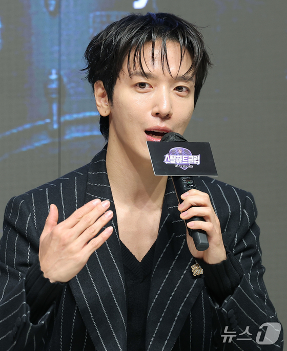 씨엔블루 정용화가 일 오전 서울 강남구 엘리에나호텔에서 열린 Mnet '스틸하트클럽' 제작발표회에 참석해 인사말을 하고 있다. ‘스틸하트클럽'은 기타, 드럼, 베이스…