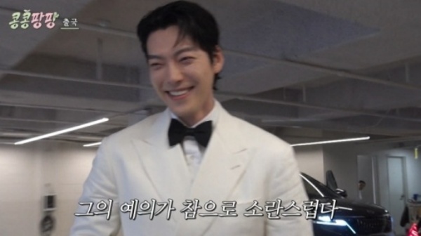 "시청자에 예의" 김우빈, 화이트 턱시도+보타이 풀세팅 공항패션..새벽 3시반 기상 ('콩콩팡팡')