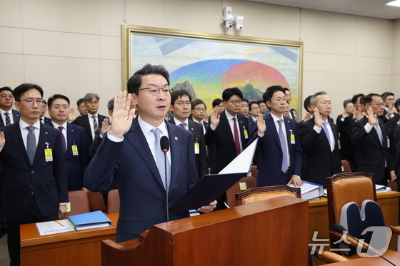 이억원 금융위원장이 일 서울 여의도 국회에서 열린 정무위원회 금융위원회 등에 대한 국정감사에 출석해 증인선서하고 있다. ../뉴스 New…