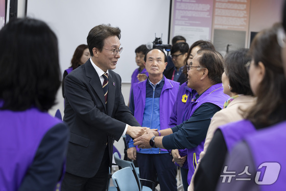 김민석 국무총리가 일 오후 이태원 참사 주기를 앞두고 서울 종로구 적선현대빌딩에 있는 ‘별들의 집’을 방문해 · 이태원 참사 유가족협의회 회원들과 악수를 나…