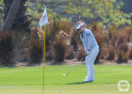 임진영이 14일 태국 촌부리 아마타 스프링컨트리클럽에서 열린 KLPGA 해외 개막전인 ‘2026 리쥬란 챔피언십’ 3라운드 1번홀에서 칩샷을 하고 있다. KLP…