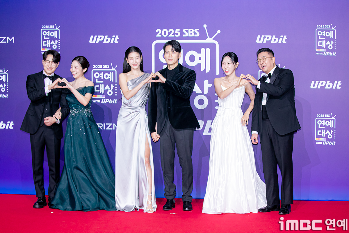 이현이, 홍성기, 조우종, 정다은, 이지혜, 문재완이 30일 오후 서울 상암 SBS프리즘타워에서 열린 2025 SBS연예대상 시상식 레드카펫 행사에 참석해 포즈를 취하고 있다. i