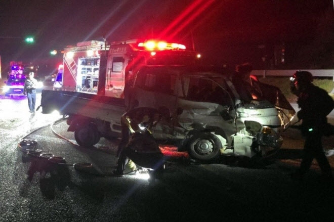 [이데일리 권혜미 기자] 전남 장성에서 화물차끼리 충돌해 50대 여성이 숨지고 20대 남성이 중상을 입는 사고가 발생했다. 사진=장성소방서 제공 7일 장성경찰서는 교통사고처리특례법