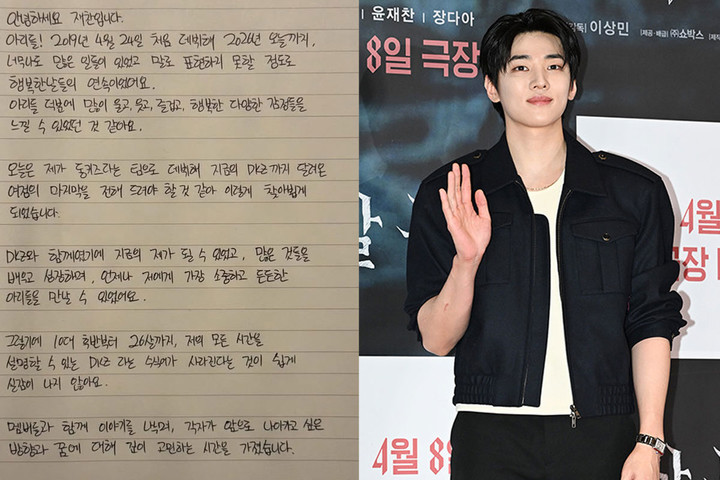 (MHN 정효경 기자) 그룹 DKZ(동키즈)가 데뷔 7년 만에 해체를 결정한 가운데 멤버 재찬이 직접 심경을 전했다. 재찬은 15일 개인 계정을 통해 자필 편지를 공개하며 "201
