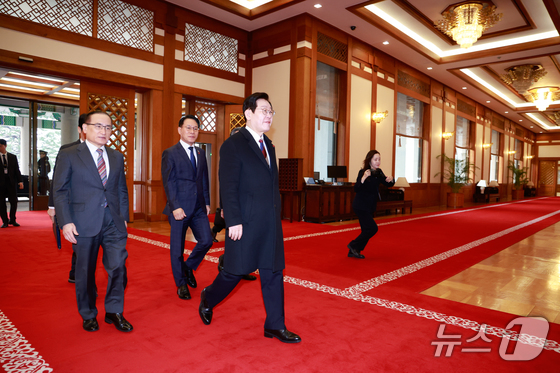 이재명 대통령이 29일 청와대로 첫 출근하고 있다. 청와대통신사진기자단 2025.12.29/뉴스1 News1 허경 기자이재명 대통령…