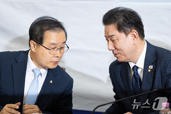 김병기 더불어민주당 원내대표오른쪽가 지난 11월 19일 서울 여의도 국회에서 열린 정치검찰 조작기소대응 특별위원회 전체회의에서 이건태 부위원장과 대화하…