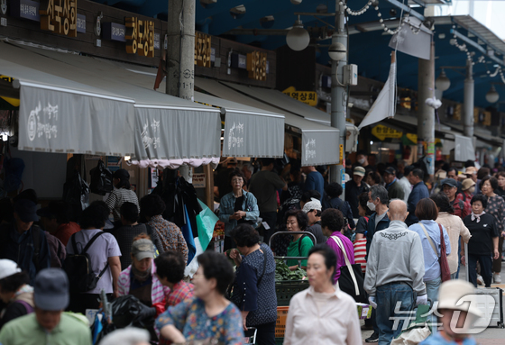 서울 동대문구 청량리 청과물시장을 찾은 많은 시민들이 제수용품을 둘러보고 있다. 2025.10.3/뉴스1 News1 권현진 기자중소벤처기업부…
