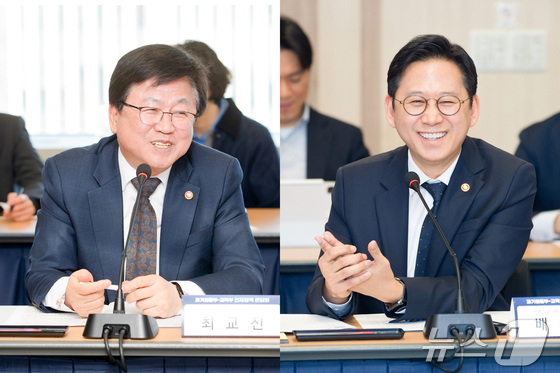 배경훈 부총리 겸 과학기술정보통신부 장관과 최교진 교육부 장관이 19일 오전 서울 종로구 광화문교보빌딩 국가과학기술자문회의 대회의실에서 열린 과기정통부-교육부 인재정책 …