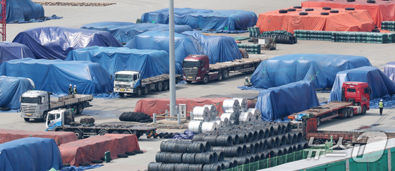 지난 월 일 경기 평택시 포승읍 평택항에 철강 제품이 쌓여있는 모습. ../뉴스 News 김영운 기자국내 철강업계가 분기 기대…
