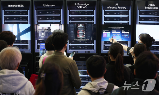 '2026 월드IT쇼'WIS 2026를 찾은 관람객들이 SKT 부스에서 AI데이터센터를 살펴보고 있다. 뉴스1 오대일 기자과학기술정…