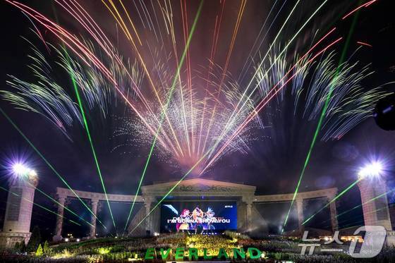 '케이팝 데몬 헌터스' 싱어롱 불꽃쇼에버랜드 제공에버랜드는 수천 발의 불꽃과 영상, 음악, 특수효과 등이 어우러진 신규 야간 공연 '케이팝 데몬…