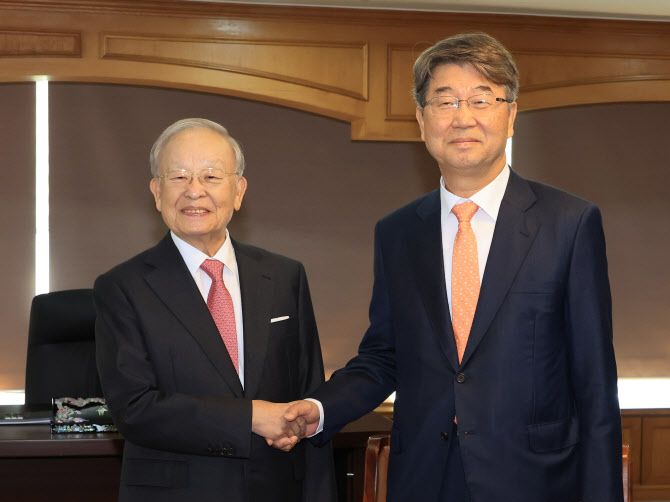 [세종=이데일리 서대웅 기자] 노사가 사회적 대화 복원 필요성에 공감대를 확인했다. 노사정 대화가 연내 시작될지 주목된다. 김지형(오른쪽) 경제사회노동위원회 위원장과 손경식 한국경