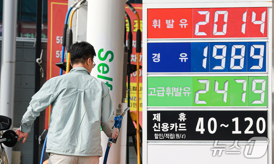 17일 서울 시내의 한 주유소를 찾은 시민이 주유를 하고 있다.2026.4.17 뉴스1 이호윤 기자17일 전국 휘발유 평균 가격이 1999.90원을 …