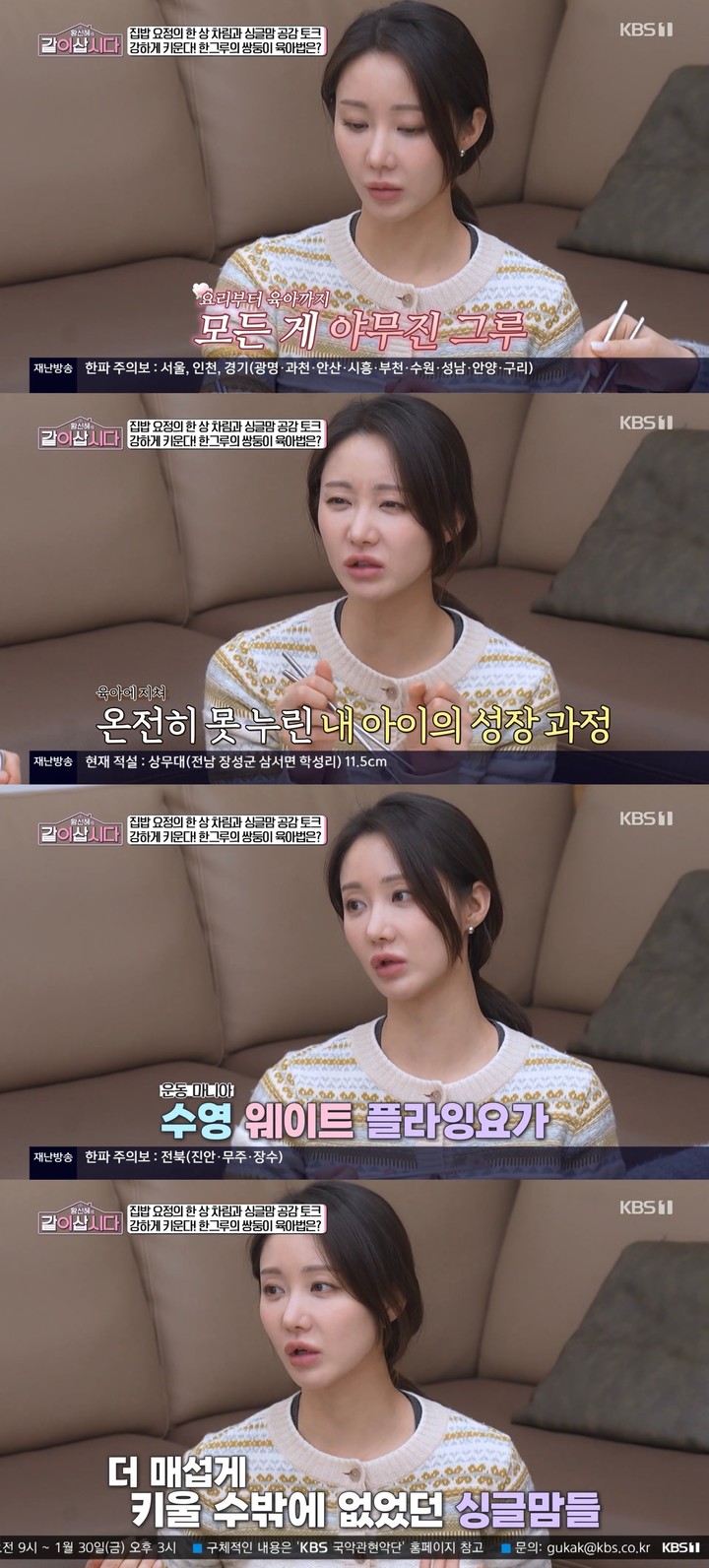 (MHN 김설 기자) 배우 한그루가 ‘살림 9단’의 면모와 함께 쌍둥이 남매를 홀로 키우는 야무진 육아 비법을 공개했다. 21일 방송된 KBS 1TV ‘황신혜의 같이 삽시다’에서는