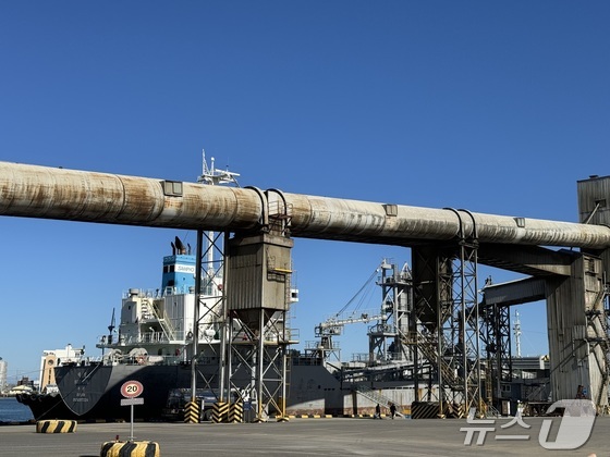 삼척항 내 삼표시멘트 시멘트 하역설비 및 시멘트 전용선 해진호. 해당 사진은 관련 기관의 허가를 받아 촬영함 2024.10.23/뉴스1 News1 박종홍 기…