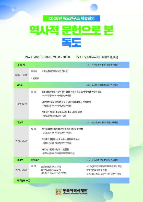2026년 독도연구소 학술회의 '역사적 문헌으로 본 독도' 포스터 동북아역사재단 제공동북아역사재단이사장 박지향은 일본의 영토 …